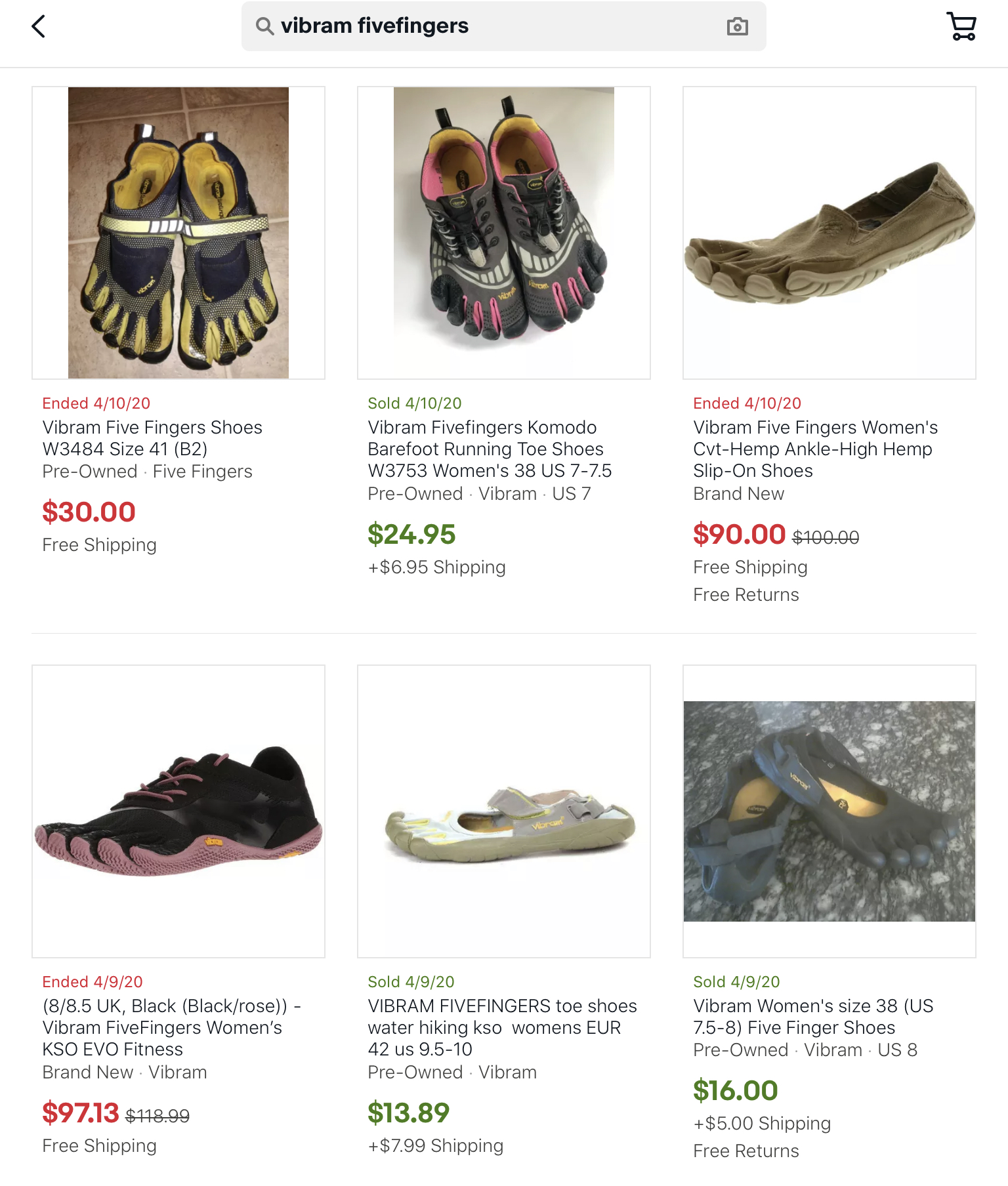 Vibram | Average Sale Price: $39